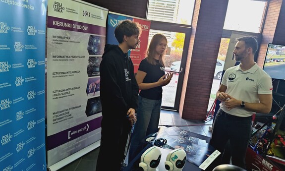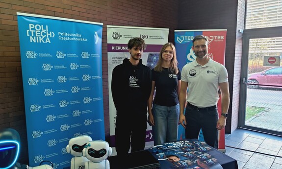- oraz przedstawiciele Koła Naukowego „Sztuczna Inteligencja” – Piotr Urbański (student 7. semestru Informatyki) i Kateryna Vlasenko (uczennica szkoły TEB).